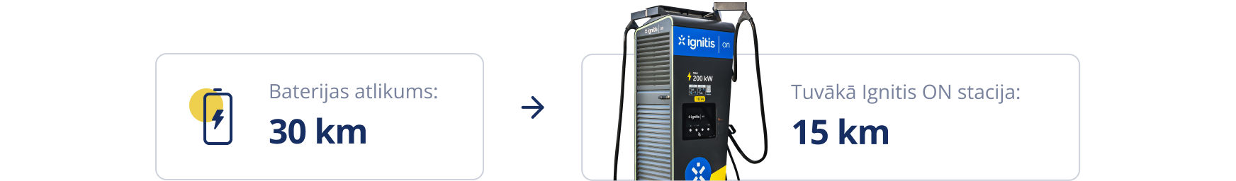 - ap katru Ignitis ON uzlādes staciju tiek noteikts 30 km sniedzamības rādiuss;