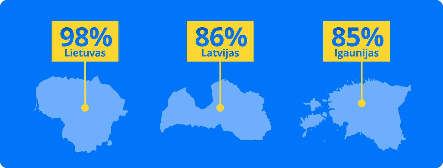 Lietuvā - gandrīz maksimāls pārklājums: 98%, Latvijā - 86,5% un Igaunijā - 85,5%